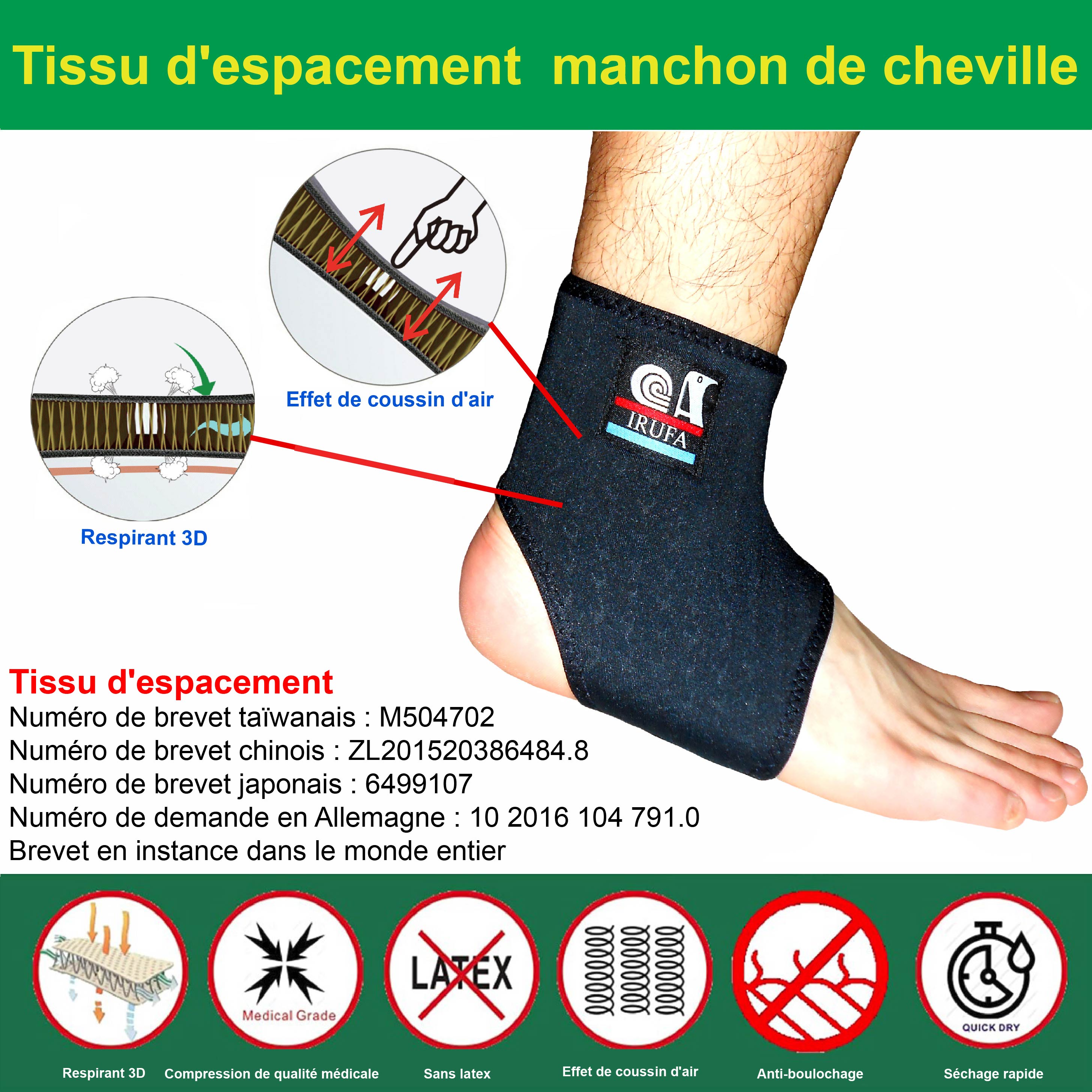 Nos supports sont tous fabriqués en tissu d'espacement. Le tissu d'espacement doit être l'un des meilleurs matériaux au monde pour les appareils orthopédiques sportifs et médicaux. Seul le tissu d'espacement a un effet de coussin d'air. La plupart des tissus d'espacement disponibles sur le marché ne sont pas assez compressifs. Nous utilisons notre technique brevetée pour fabriquer un tissu d'espacement de compression de qualité médicale.