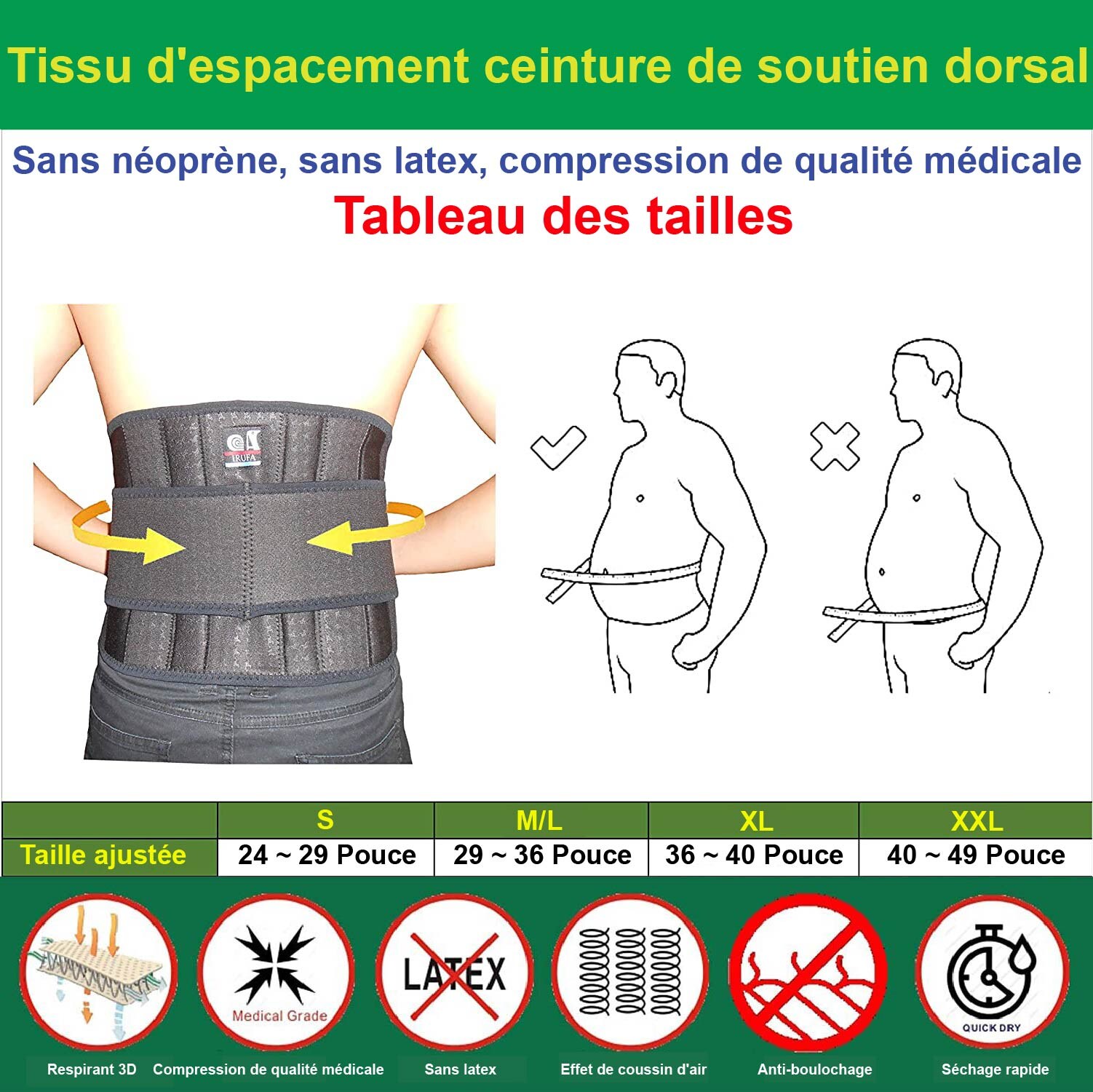 Taille XL taille ajustée 37~ 43 pouces,