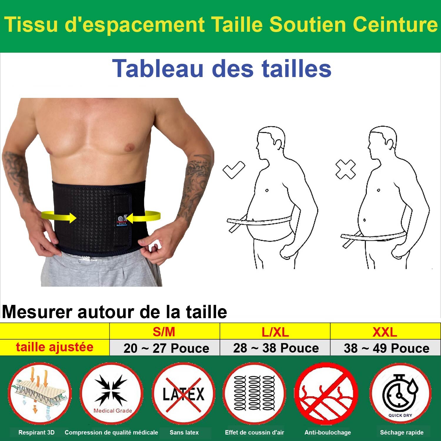 Taille XXL taille ajustée 38~ 48 pouce.