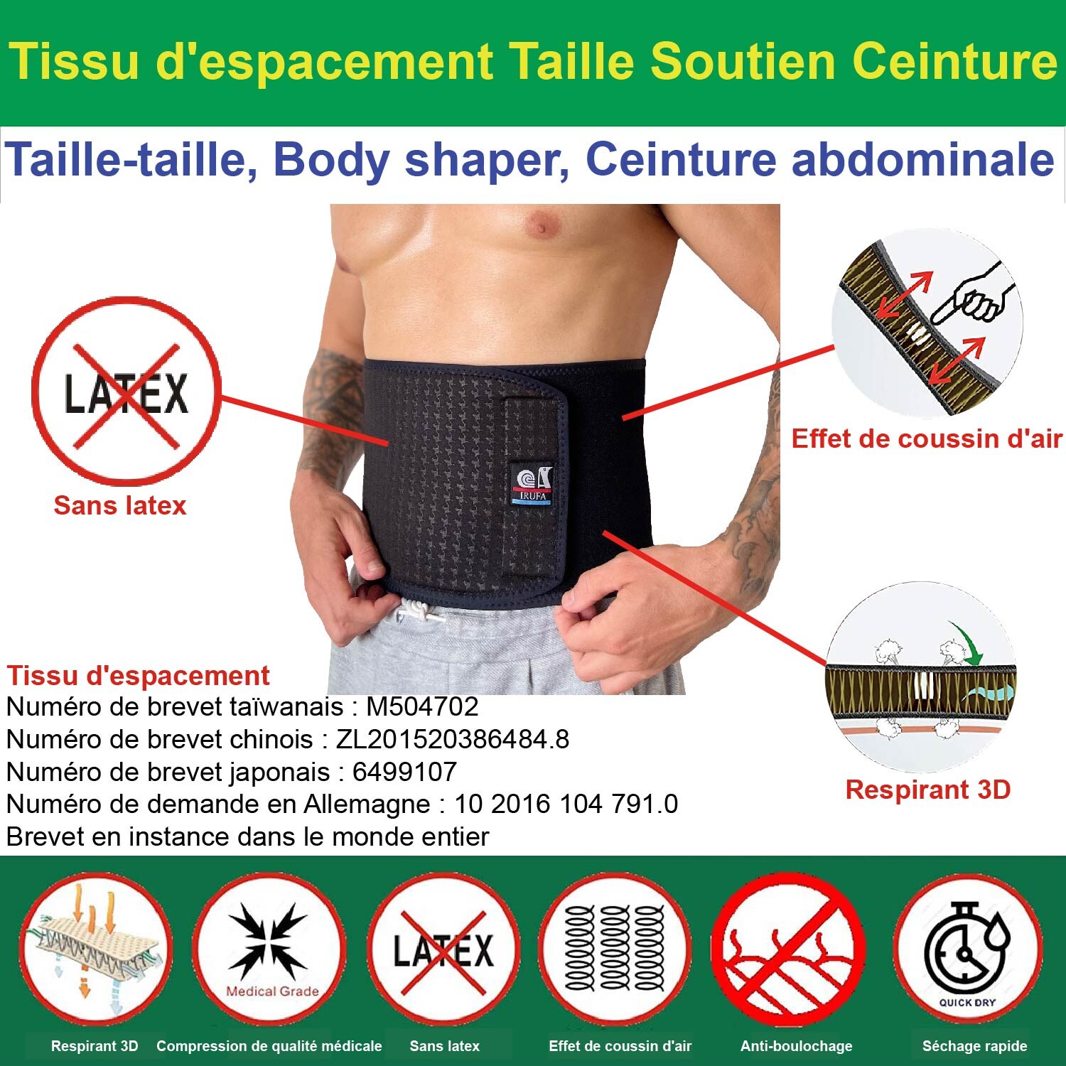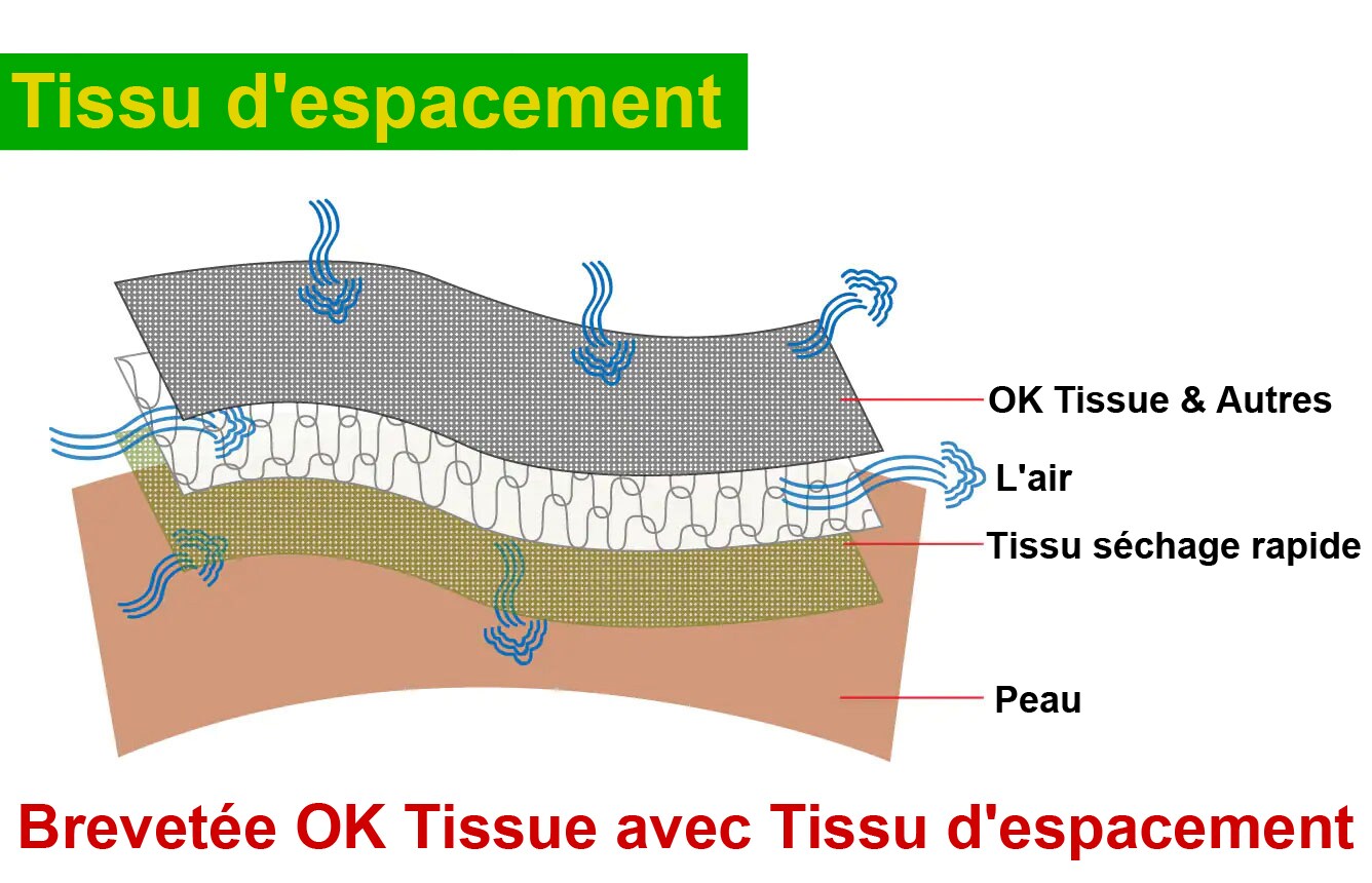Nos supports sont tous fabriqués en tissu d'espacement. Le tissu d'espacement doit être l'un des meilleurs matériaux au monde pour les appareils orthopédiques sportifs et médicaux. Seul le tissu d'espacement a un effet de coussin d'air. La plupart des tissus d'espacement disponibles sur le marché ne sont pas assez compressifs. Nous utilisons notre technique brevetée pour fabriquer un tissu d'espacement de compression de qualité médicale.